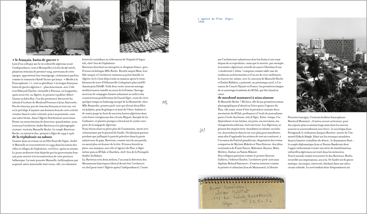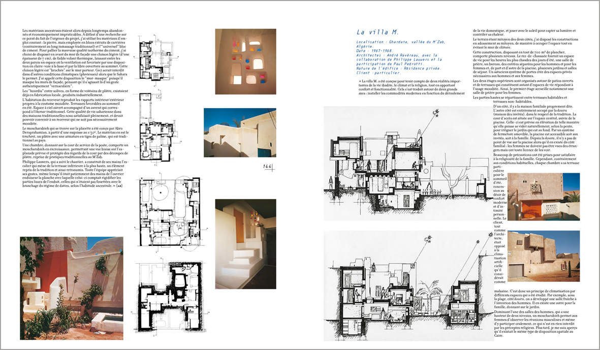 Textes de Antoine Picon, Philippe Potié, Marion Tournon‑Branly, Manuelle Roche, Rémi Baudouï, Jean‑Pierre Péroncel‑Hugoz, Jean‑Jacques Deluz, Rabia Bekkar, Leïla el-Wakil, Philippe Lauwers, Zouhir Ballalou, Gabrielle Regamey, Fabienne et Gildo Gorza, Chéhrazade Nafa et Ahmed Koumas, Titane Galer et Hugo Houben, Patrice Doat, Gilles Perraudin, André Ravéreau.